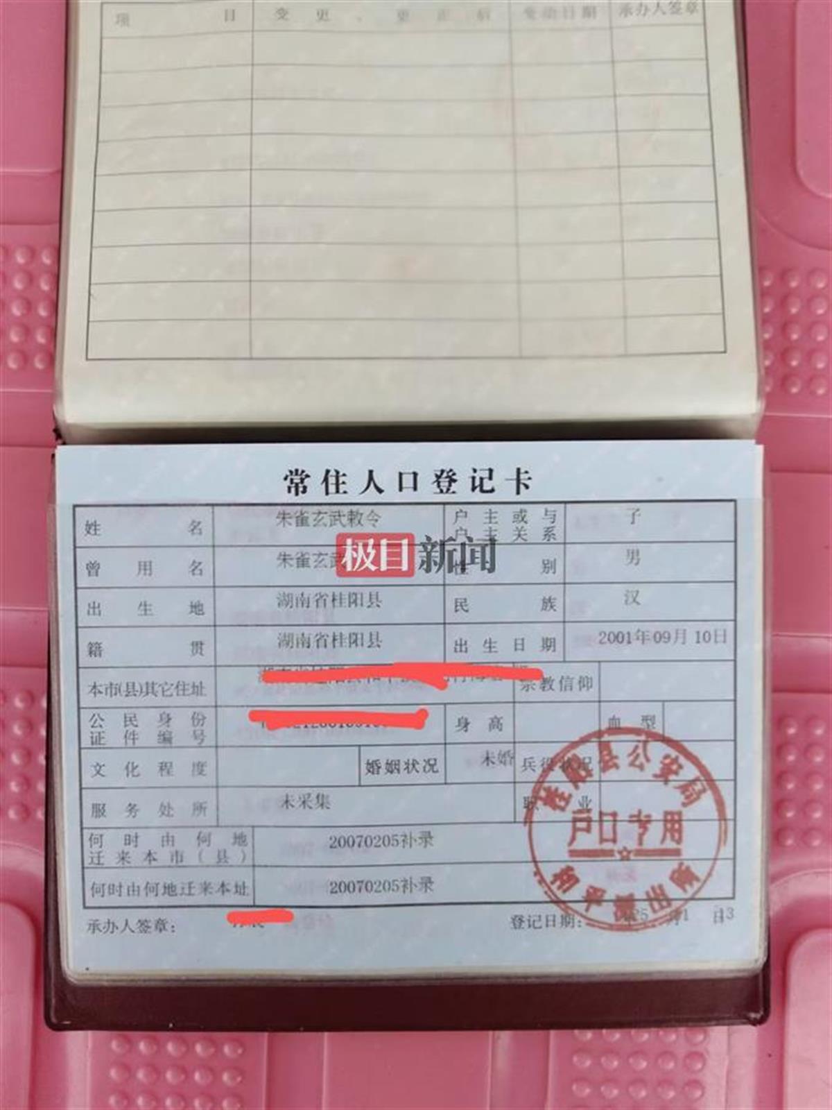 对于儿子申请改名为“朱咸宁”,朱师傅告诉极目新闻记者,他一家人都是汉族,取名3个字比较符合传统,他同意这么改。